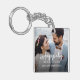 Honour your loved one with this personalised throw pillow featuring a full bleed picture of your big day with the overlaying caption "Happily ever after" and your names in white modern fonts decorated with two little hearts. Personalizable with a second of your favourite photos on the back, this keychain makes the perfect gift on special occasions such as Valentine's day, wedding anniversaries, birthdays, and much more.