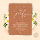 Mark the beginning of your forever with elegance using our contemporary romantic brown copper theme wedding elopement celebration invitation card, "Happily Ever After party". Perfect for couples extending their joyous occasion, this invitation exudes sophistication with a hint of playfulness, setting the stage for a memorable event. Adorned with a timeless modern script design theme, it adds a touch of refined charm to your festivities. Crafted by TeeshaDerrick, this invitation promises to beautifully capture your love story.