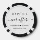 Chic poker chips for your wedding reception, engagement parties, rehearsal dinner, couples showers, other wedding celebrations and your newlywed life that feature "Happily Ever After" in simple modern typography and a stylish script with swashes, your first names joined by a heart and your wedding date.