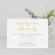 Wedding reception invitation for a happily ever after party. Double-sided reception invitation features the wording "happily ever after party" in faux gold foil on the front side and a photo of the newlyweds on the backside. Customise with your horizontal photo on the backside or leave blank if no photo is desired.