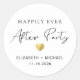 Chic sticker for your wedding reception or celebration party invitations and party favours featuring "Happily Ever After Party" in a mix of simple typography and a modern script, your first names and reception date and a gold heart.