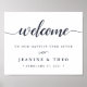 Welcome guests to your wedding with our sweetly chic poster, available in several sizes. Design features rich navy blue typography on crisp white with "welcome" at the top in elegant handwritten calligraphy script, and "...to our happily ever after" and your names and wedding date beneath in classic block lettering.