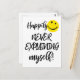 This design is perfect for those who don't need to explain themselves! The text reads: "Happily never explaining myself!" A yellow happy face accompanies the word "happily." Happily NEVER explaining myself design © 2019 Regina Blankenship.