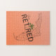 Celebrate the best years of your life with this beautiful retirement themed jigsaw puzzle. The design features a Florida state map with the saying, "Happily Retired." A tropical palm tree replaces the letter "i" in retired! The background is a contemporary orange coloured gradient. Available in various size options. The puzzle is perfect for a retirement party gift, Grandparent's gift, gift for senior citizens, snowbirds, or anyone enjoying retirement in the State of Florida! Please browse our complete collection of tropical-themed retirement cards, gifts, t-shirts, home decor, and more. Special design requests accepted.