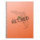 Celebrate the best years of your life with this beautiful retirement themed notebook/journal. The design features a Florida state map with the saying, "Happily Retired." A tropical palm tree replaces the letter "i" in retired! The background is a contemporary orange coloured gradient. The writing pad is perfect for a retirement party gift, Grandparent's gift, gift for senior citizens, snowbirds, or anyone enjoying retirement in the State of Florida! Please browse our complete collection of tropical-themed retirement cards, gifts, t-shirts, home decor, and more. Special design requests accepted.
