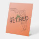Happily Retired Florida Map and Tropical Palm Tree Pedestal Sign