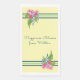 This guest towel features a cheery spring bouquet with blue and green striped accents. You can customise the text and yellow background.
