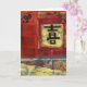 Asian paper mixed medium collage with the Chinese character for "happiness" . Inside the card left a quote by Buddha.
