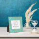 Something to do, someone to love, and something to look forward to, is a simple inspirational quote on the Rules for Happiness you can easily live by. Place this handsome little square tabletop plaque on a bedside table as a morning reminder, or give it as a bridesmaid gift. A turquoise background with faux gold polka dots frames the quote.