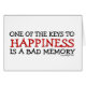 One of the keys to happiness is a bad memory. Funny humourous sayings / quotes for short attention spans, seniors, getting older, etc. Saying about aging and getting older on T-Shirts and gifts.