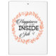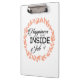 Happiness is an inside job graphic with a peach pink wreath and heart. Happiness, love and inner peace is always from within. Custom graphic design made with love.