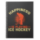 Hockey notebook with a silhouette hockey player reads Happiness is Playing Ice Hockey!