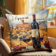 An artistic design pillow featuring an Italian fantasy landscape painting with red wine. Beautiful for any wine lover.