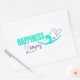 Graphic gymnastic leaper happiness leaps slogan sticker in aqua and purple. © Art and design by www.mylittleeden.com