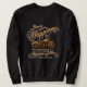 "Money can't buy happiness, but you can find it on a motorcycle, which you can buy." Fancy script and drawing of a custom bike, black & orange, on t-shirts and gifts.