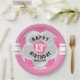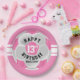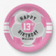 Happy 00th Birthday - Pink and White Soccer Ball Paper Plate