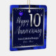 Lovely red Happy 10th Anniversary ornament. Faux foil on 10th and as a border frame. Blue oil background created by Valarie Wade. Tiny blue heart gem in the upper corner. Names and dates are adjustable.