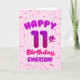 Celebrate their 11th birthday with a bright, cheerful, and personalizable birthday card! This custom name birthday card features a bold number eleven balloon and colourful confetti.