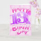 Happy 13th Birthday card. Colour: Mostly pinks and purples. Greeting inside: Happy birthday, May this day always be a special one to remember.
