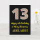 The front of this fun and simple Christmas-themed and birthday-themed December 25th birthday greeting card design features a large number "13" with a red/white/green stripes pattern, along with the message "Happy 13th Birthday & Merry Christmas,", and a customizable name. The background of the front is colored black. The inside features an editable birthday greeting message, or could perhaps be cleared and left blank if a message is to be written by hand instead. A personalized birthday card like this might be a fun way to send birthday wishes to somebody who is celebrating their thirteenth birthday and who was also born on Christmas Day (December 25th). [~Z0000405]