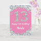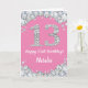 Happy 13th Birthday Pink and Silver Glitter Card with personalised name. For further customisation, please click the "Customise it" button and use our design tool to modify this template.