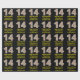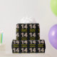 This simple and fun Christmas themed and birthday themed December 25th birthday wrapping paper design features a large number "14", with a red, white, and green stripes pattern. It also features the message "Happy 14th Birthday & Merry Christmas,", and a personalised name. The background is coloured black. Wrapping paper like this might be fun to use when wrapping presents or gifts that are being given to somebody who was born on December 25th (Christmas Day) and who is celebrating their fourteenth birthday. [~Z0000406]