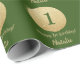 Happy 1st Birthday Green and Gold Glitter Wrapping Paper with personalized name. For further customization, please click the "Customize it" button and use our design tool to modify this template.