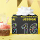 This fun birthday themed wrapping paper design features a large number "16" filled with a pattern of star shapes having various colours and sizes, along with the message "Happy 16th Birthday,", and a custom name. The background is coloured black. Wrapping paper like this might be used when giving a gift or present in honour of somebody’s 16th birthday. [~Z0000429]