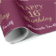 Happy 16th Birthday Gold Glitter and Burgundy Red Wrapping Paper