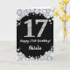 Happy 17th Birthday Black and Silver Glitter Card with personalised name. For further customisation, please click the "Customise it" button and use our design tool to modify this template.