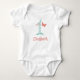 Cute and elegant First Birthday Baby Bodysuit for a baby girl. It features " 1 " made of leaves and pink flowers with the pink butterfly besides. Back of the T-Shirt features just pink butterfly. Great gift on the occasion of first birthday celebration. Design of the Baby Bodysuit is created in Boho colors. You can easily personalize girl's name using Zazzle online tools. Don't hesitate to contact me via Zazzle if you need help to personalize this invitation.