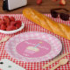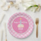 Your little girl's first birthday plates will be a sweet as her birthday cake with this watercolor cupcake design. A hand painted pink cupcake with blue candle is the centerpiece of this charming plate and the chequerboard border gives it just the right touch of whimsy for a yummy birthday celebration. This is part of the 1st Birthday Cupcake collection, look for coordinating invitations and party goods.