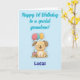 Happy 1st Birthday card for grandson with happy puppy, cake and balloons. 1st Birthday card from Grandma & Grandpa. Fully customizable message inside, personalize and change as you wish. Instant download possible. Happy first birthday to a special grandson! Texted and designed by Best Baby Gifts - given with love.
