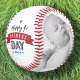 “Happy First Father’s Day.” Celebrate all of Dad’s joy of becoming a new parent. Cool, modern black, blue, and white typography on a red banner and sweet red hearts overlay a white background. Add two photos of your choice and customise the copy for the perfect, personalised keepsake baseball that he’ll treasure always. Makes a terrific Dad gift for Father’s Day!