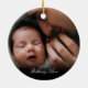 This personalised Father's Day ornament features a photo on the front for you to change to your own with the words "Happy 1st Father's Day!" in modern white elegant script typography. The back has a 2nd baby photo and has a signature to customise. Designed by Susan Coffey.