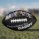 New dad fathers day football gift featuring a stylish black and white theme, add 5 of your own precious family photos, the saying "happy 1st father's day daddy" in a trendy typographic design, and the childs name.