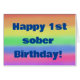 Happy 1st sober birthday card - Congratulations on rainbow background.
