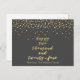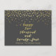 NewParkLane - Personalised Postcard, with 'happy 2024' (written out as 'Two thousand and twenty four') in elegant brush/ script typography in faux gold, with gold confetti against a dark grey background. A perfect card to send for New Year's!