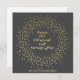 NewParkLane - Elegant personalised New Year Card, with 'happy 2024' (written fully as 'two thousand and twenty-four') in an elegant brush / script typography in faux gold, with a gold confetti wreath, against a deep grey background.