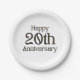 These plates feature the words "Happy 20th Anniversary" in a unique print font with gold letters black outline. Plates come in a set of eight and is printed on durable paper stock great for serving cake, appetizers, or salads. All plates are FDA approved for food contact and safety fully biodegradable and printed with vegetable-based inks printed in USA.