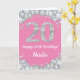 Happy 20th Birthday Pink and Silver Glitter Card