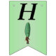 This flag shaped bunting Happy Birthday banner is green with a funny guy who has a large green pickle for a head with a surprised look on his face and is wearing a brown suit. Customise the Happy Birthday text and birthday year with the templates.