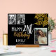 Happy 21st Birthday Gold Foliage 3 Photo Backdrop Print on Wood Block. Celebrate a milestone in style with this Elegant Black & Gold 21st Birthday Sign. Featuring a sophisticated black background adorned with luxurious gold foliage, this design adds a touch of class. Personalised with three photos, this sign is perfect for making the guest of honour feel extra special. Make turning 21 unforgettable with this timeless and chic design!