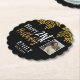 Happy 21st Birthday Gold Foliage Photo Party Paper Coaster. An elegant gold foliage on a black background. Add your name and age, and make your own birthday party coaster.