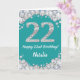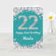 Happy 22nd Birthday Teal and Silver Glitter Card