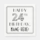 This elegant 1920s/1930s era inspired art deco style birthday themed paper napkin design has the message “HAPPY 24TH BIRTHDAY,”, plus a custom recipient name. The number “24TH” has a fancy geometric lined look, and there is also a multi-line border around the birthday greeting message. Luxurious birthday themed paper napkins like these might be used at a party in celebration of somebody’s twenty-fourth birthday. [~Z0000644]
