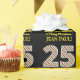 This simple and fun Christmas themed and birthday themed December 25th birthday wrapping paper design features a large number "25" with a red/white/green stripes pattern, along with the message "Happy 25th Birthday & Merry Christmas,", and a customisable name. The background is coloured black. Wrapping paper like this might be used when wrapping gifts that are being given to somebody whose twenty fifth birthday falls on December 25th (Christmas Day). [~Z0000406]