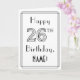 The front of this luxurious Roaring Twenties art deco inspired birthday themed greeting card design has the message “Happy 26th Birthday,” and an editable recipient name. The number “26th” on the front has a fancy lined look, and there is also a multi-line border. The inside features an editable birthday greeting message, or could perhaps be cleared and left blank if a message is to be written by hand instead. A stylish, customisable birthday greeting card like this might be sent to celebrate somebody’s twenty-sixth birthday. [~Z0000641]