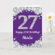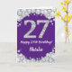 Happy 27th Birthday Purple and Silver Glitter Card with personalised name. For further customisation, please click the "Customise it" button and use our design tool to modify this template.