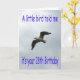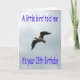 Flying Seagull in a cloudy sky with the bird’s wings out spread and a Birthday greeting.